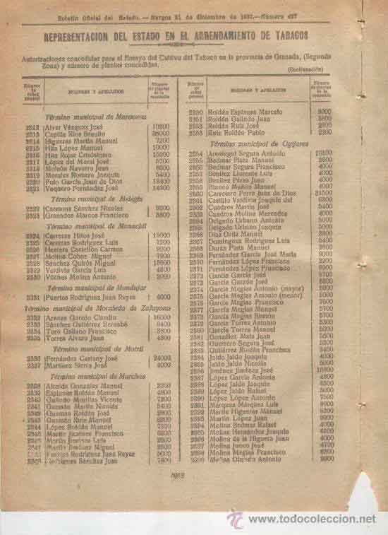 1 BOLETÍN. GUERRA CIVIL. AÑO 1937. CULTIVO DE TABACO.