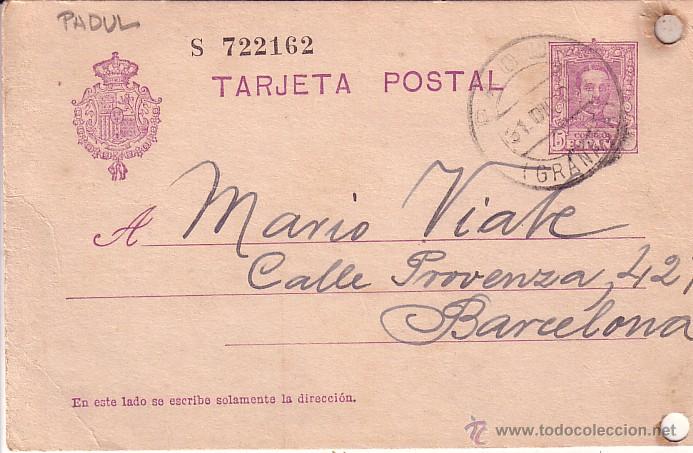 Postal Alfonso XIII Edifil 57. PADUL (Granada) 1928