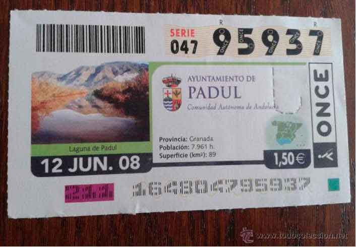cupón de la once de día 12-06-08 ayuntamiento de Padul,
