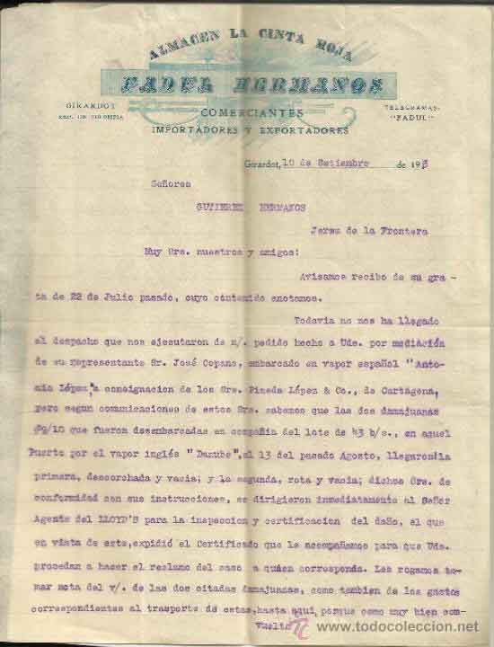 8 CARTA COMERCIAL DE PADUL HERMANOS. ALMACÉN LA CINTA ROJA.