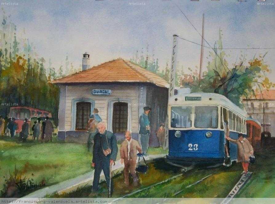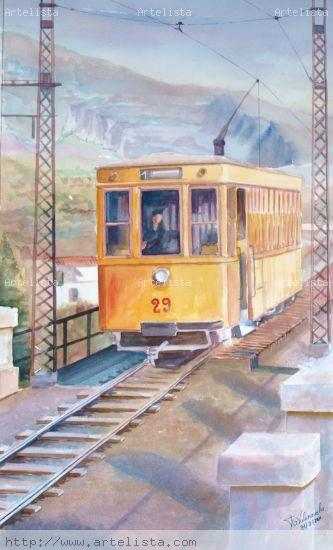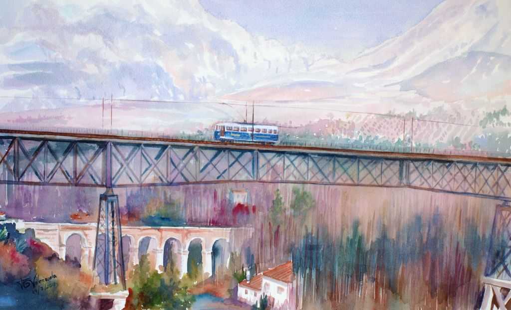 Acuarela El tranvía en el puente