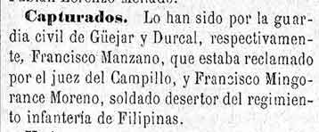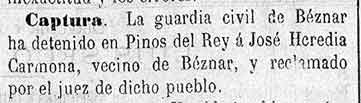 12 de agosto de 1881. La Guardia Civil de Béznar detiene a un