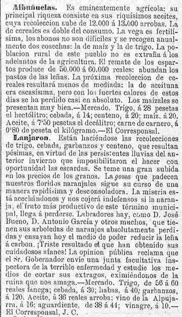 1 de agosto de 1881. Los naranjos de Lanjarón y su enfermedad