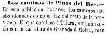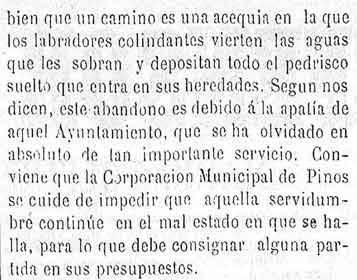 17 de agosto de 1881. Los caminos de Pinos del Rey están muy