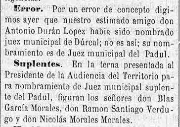 17 de agosto de 1881. Juez de Padul (Más adelante lo