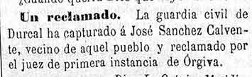 19 de agosto de 1881. Detención en Dúrcal
