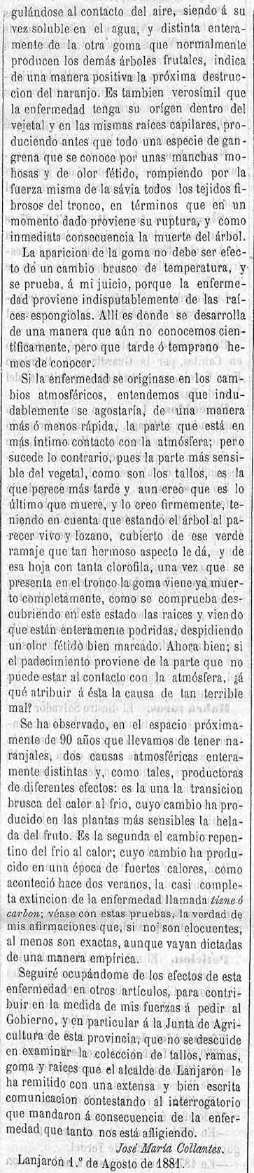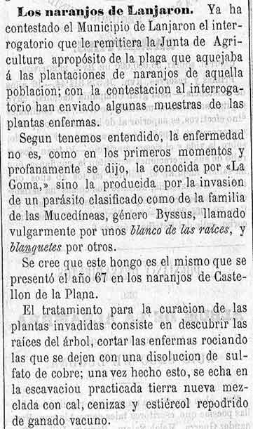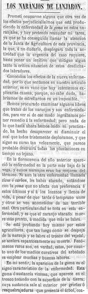 3 de agosto de 1881. los naranjos de Lanjarón y su enfermedad