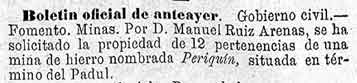 1 de agosto de 1881. Mina de Padul