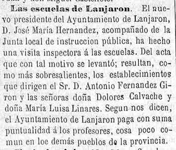 20 de agosto de 1881. Las escuelas de Lanjarón