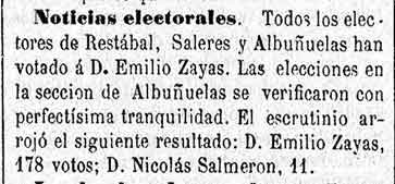 24 de agosto de 1881. En Restábal, Saleres y Albuñuelas votan