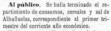 27 de agosto de 1881. Consumos de Albuñuelas