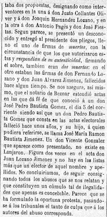 31 de agosto de 1881. Escándalos electorales en Lanjarón