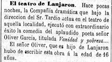 31 de agosto de 1881. Teatro en Lanjarón