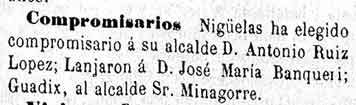 31 de agosto de 1881. Compromisarios de Nigüelas y Lanjarón