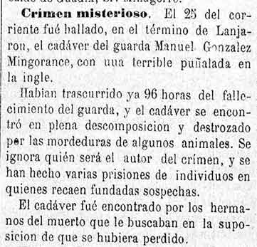 31 de agosto de 1881. El guarda de Lanjarón asesinado