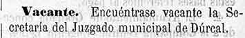 6 de agosto de 1881. Juzgado municipal de Dúrcal vacante