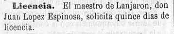 9 de agosto de 1881. Maestro de Lanjarón