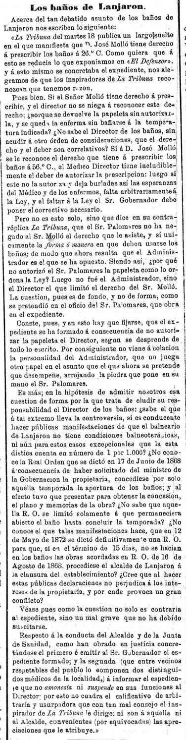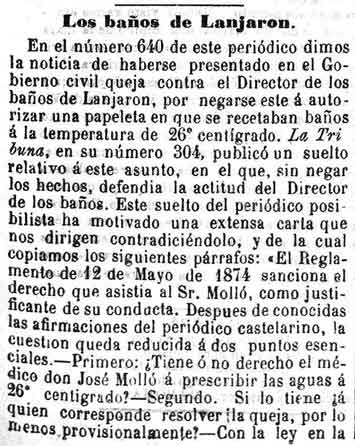 15 de julio de 1882. Los baños de Lanjarón. Disputa sobre si