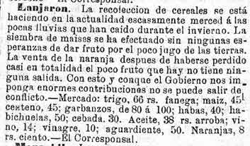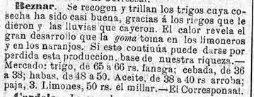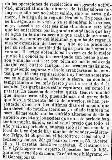 15 de julio de 1882. Agricultura de Albuñuelas, Béznar y