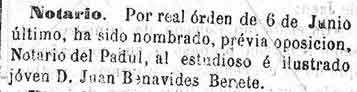 1 de julio de 1882. Notario de Padul