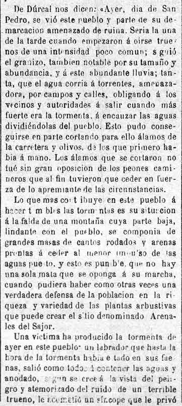 2 de julio de 1882. Terrible tormenta en Dúrcal que inunda