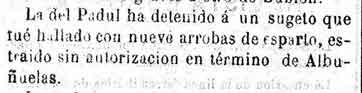 6 de julio de 1882. Detenido un vecino de Padul por robar