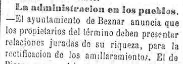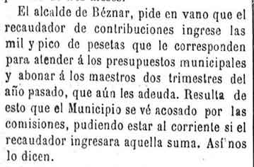 22 de febrero de 1883. El alcalde de Béznar pide en vano al