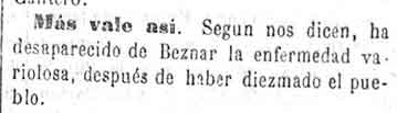 13 de febrero de 1883. Remite la epidemia en Béznar