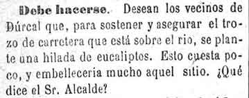 17 de febrero de 1883. Vecinos de Dúrcal piden se pongan