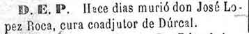 17 de febrero de 1883. Muere eclesiástico de Dúrcal