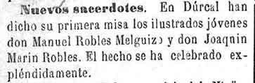 17 de febrero de 1883. Primera misa de dos nuevos curas de