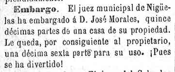 17 de febrero de 1883. Curioso embargo en Nigüelas