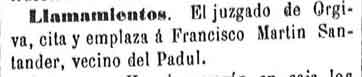 20 de febrero de 1883. Citado al juzgado un vecino de Padul