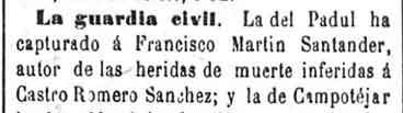28 de febrero de 1883. Detención en el Padul por herir a otro