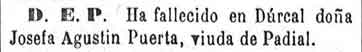8 de febrero de 1883. Fallece personaje de Dúrcal