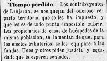 13 de julio de 1883 Quejas en Lanjarón por los impuestos