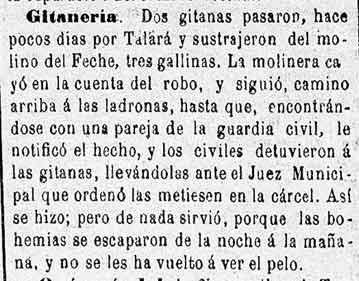 13 de julio de 1883 Roban tres gallinas del Molino de Feche
