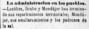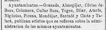 20 de julio de 1883 Administración de Nigüelas, Mondújar, y