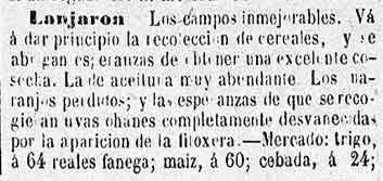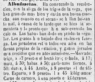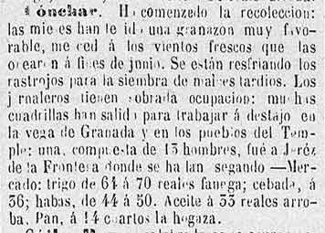 16 de julio de 1883 Agricultura de Albuńuelas, Cónchar,