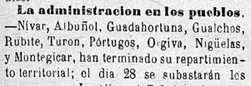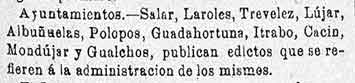 11 de julio de 1883 Administración de Albuńuelas