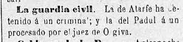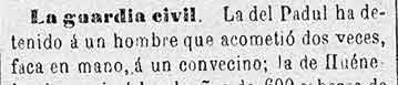 22 de julio de 1883 Detención en Padul por acometer con una