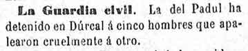 21 de junio de 1883. Detención en Dúrcal por apalear a otro