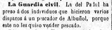 30 de junio de 1883. Detención en Padul por hacer disparos