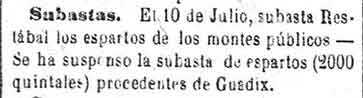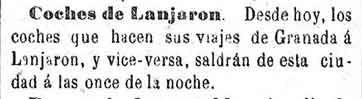 20 de junio de 1883. Horario del coche de Granada a Motril