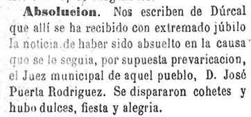 11 de marzo de 1883. Alegría en Dúrcal al ser absuelto el