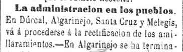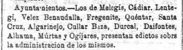 18 de marzo de 1883. Administración de Melegís