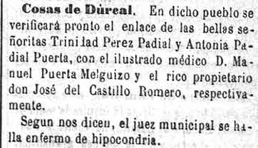 14 de marzo de 1883. Dos enlaces matrimoniales en la