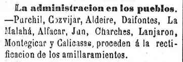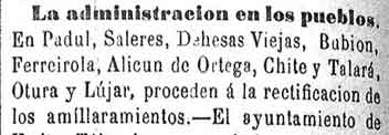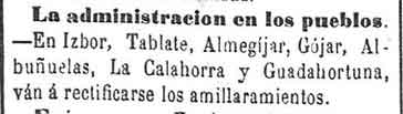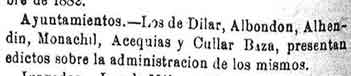 26 de marzo de 1883. Administración de Ízbor y Albuńuelas