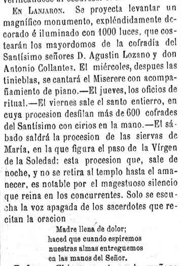 18 de marzo de 1883. Semana Santa en Lanjarón