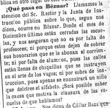 31 de marzo de 1883. Las escuelas de Béznar están cerradas